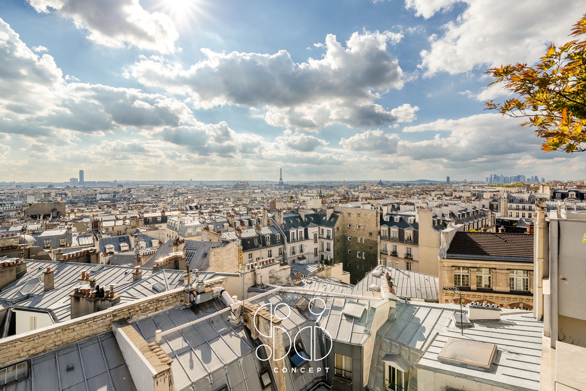 So9Concept vous propose dans le 9è arrondissement, au 6e et dernier étage avec ascenseur, ce superbe appartement de prestige allie espace, lumière et raffinement. Il se compose d’un salon de plus de 60 m², aux 5 mètres de hauteur sous plafond, baigné de lumière et ouvrant sur une terrasse de 25 m² avec vue dégagée sur la capitale. Une cuisine équipée avec véranda, profite d’une vue directe sur la Tour Eiffel. Des rangements et toilettes invités complètent cet étage. En duplex, deux grandes chambres disposent chacune d'une salle de bain avec toilettes privatifs. Enfin une terrasse exceptionnelle de 130 m², véritable écrin de verdure en plein cœur de Paris offre une vue sur tous les monuments de la capitale, à l'abri des regards et au calme. Un havre de paix, comme une maison à Paris avec la vue en plus! Ce que l'on aime: - les volumes - la luminosité - le calme - les vues fantastiques Deux place de parking complètent ce bien. 32 lots dans la copropriété Pas de procédure en cours.
